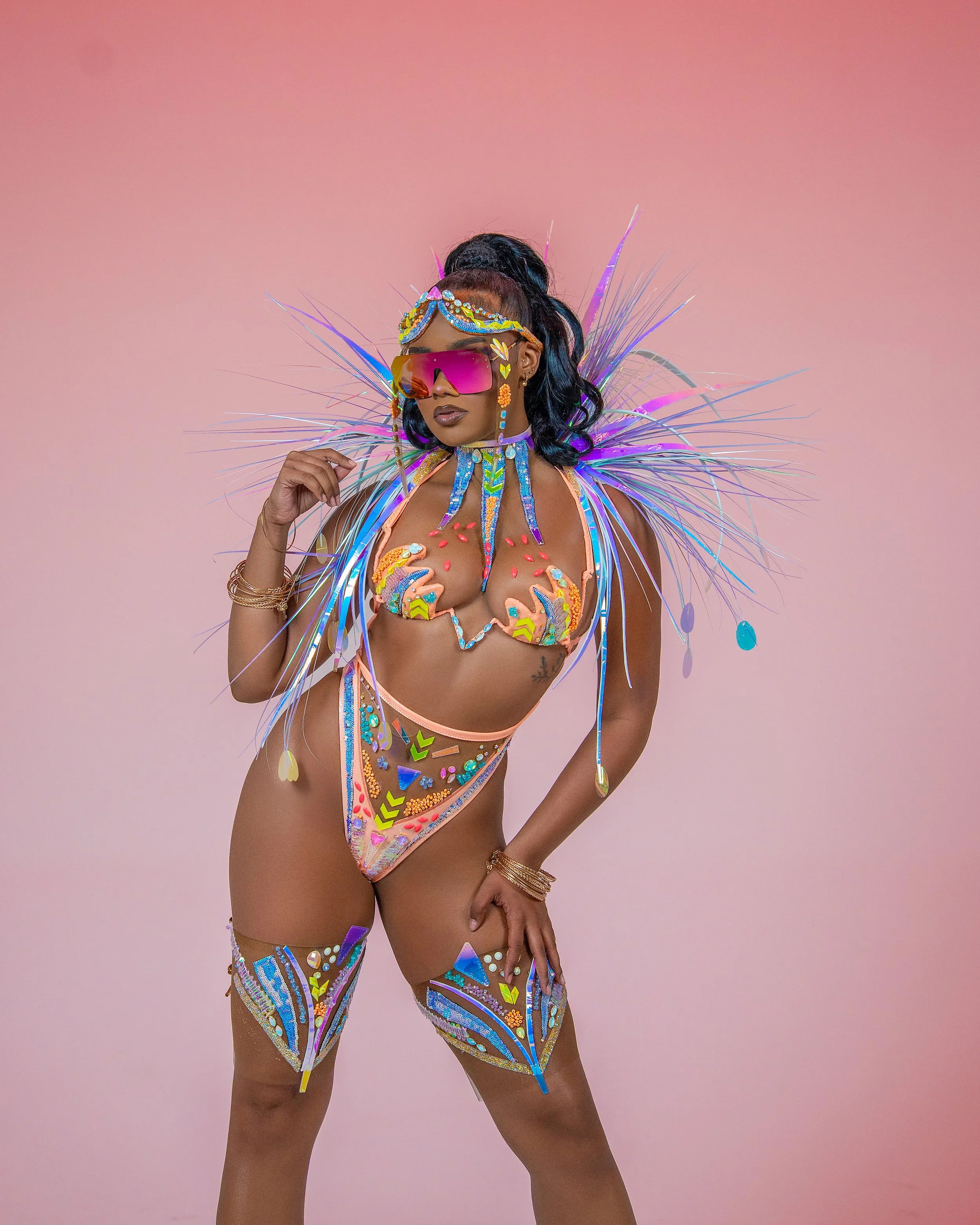 IGHT was inspired by my desire to create something shiny, powerful, and full of energy, marking a personal new beginning after the creative pause of the pandemic. Designed in Trinidad, this costume captures the feeling of emergence and renewal, with reflective details and dynamic elements that convey movement, brilliance, and transformation. LIGHT celebrates resilience and the joy of returning to creation, inviting the wearer to shine and embrace the road with confidence and vibrancy.